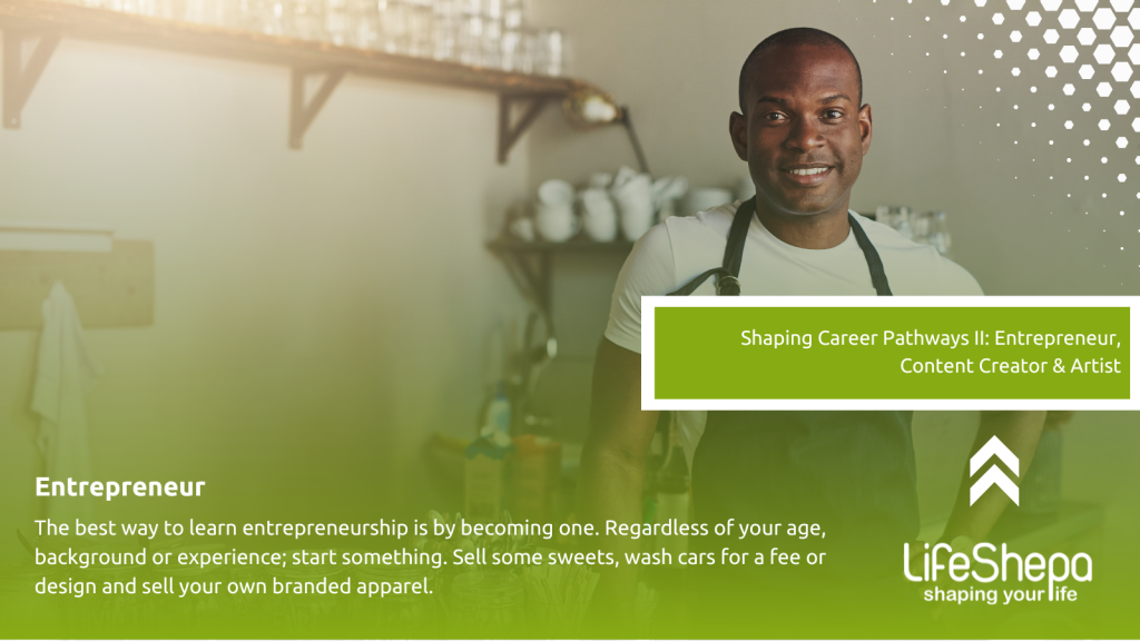 While this is a good starting point, the best way to learn entrepreneurship is by becoming one. Regardless of your age, background or experience; start something. Sell some sweets, wash cars for a fee or design and sell your own branded apparel.
