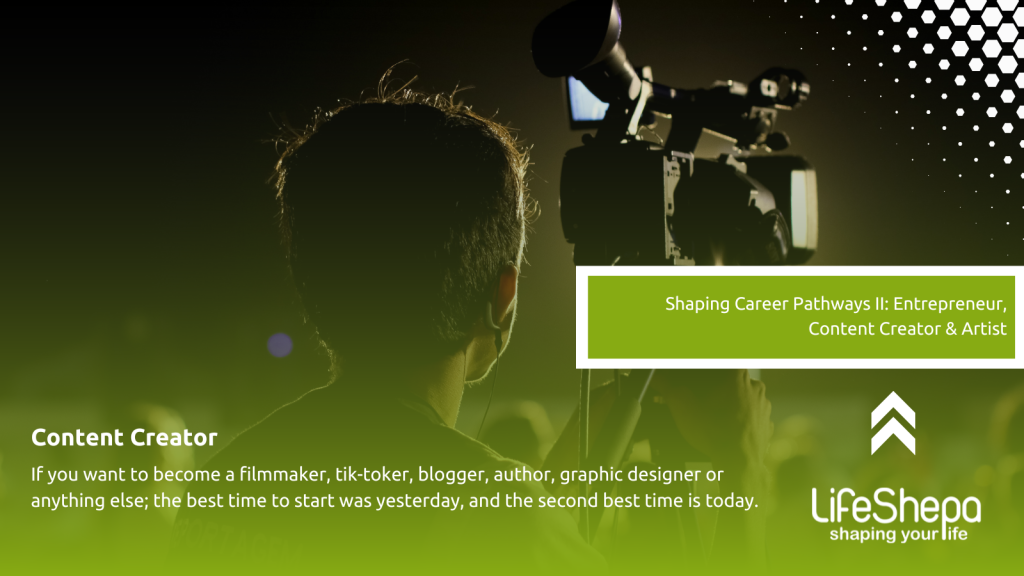 If you want to become a filmmaker, tik-toker, blogger, author, graphic designer or anything else; the best time to start was yesterday, and the second best time is today.
